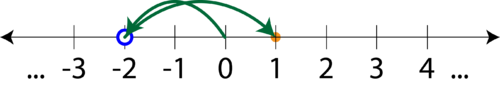 Totuşi pare tare ciudat să calculezi "(-2) + (+3)" -- ce înseamnă asta de fapt? Hai să revenim la exemplul nostru cu jocul video. Vom începe cu prima parte a expresiei de deasupra: "(+3) + (-2)", care ar fi echivalentul situaţiei următoare: "atunci când a început jocul am făcut trei paşi la dreapta, apoi m-am lovit de un zid de lavă care m-a trimis doi paşi înapoi":
