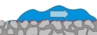 - ↑ În lipsa contactului dintre asperităţile a două corpuri solide, echilibrul de forţe se bazează pe interacţiuni hidrodinamice, ceea ce schimbă complet toate datele problemei.